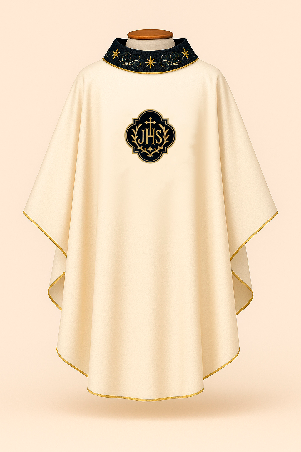 Casula confeccionada em tecido Gabardine de alta qualidade, com caimento leve e toque sofisticado. Medalhão bordado em veludo, Gola bordada em veludo, proporcionando destaque e elegância à peça. Toda a casula é ricamente bordada com detalhes litúrgicos, expressando solenidade e reverência. Ideal para celebrações especiais, une tradição, beleza e excelência artesanal.