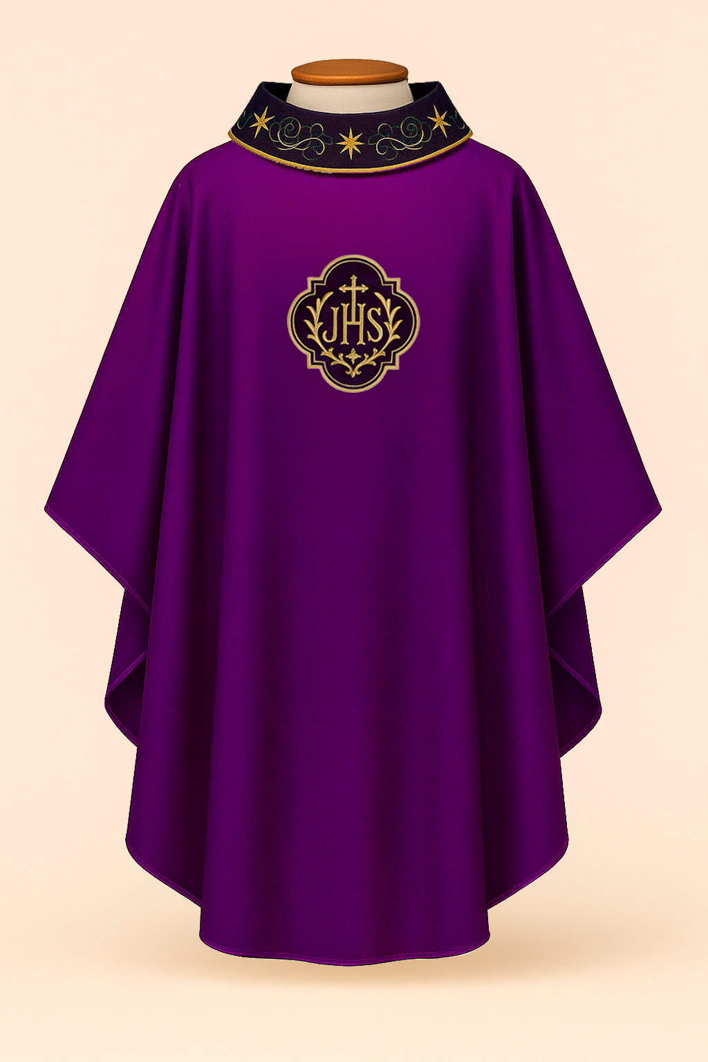Casula confeccionada em tecido Gabardine de alta qualidade, com caimento leve e toque sofisticado. Medalhão bordado em veludo, Gola bordada em veludo, proporcionando destaque e elegância à peça. Toda a casula é ricamente bordada com detalhes litúrgicos, expressando solenidade e reverência. Ideal para celebrações especiais, une tradição, beleza e excelência artesanal.